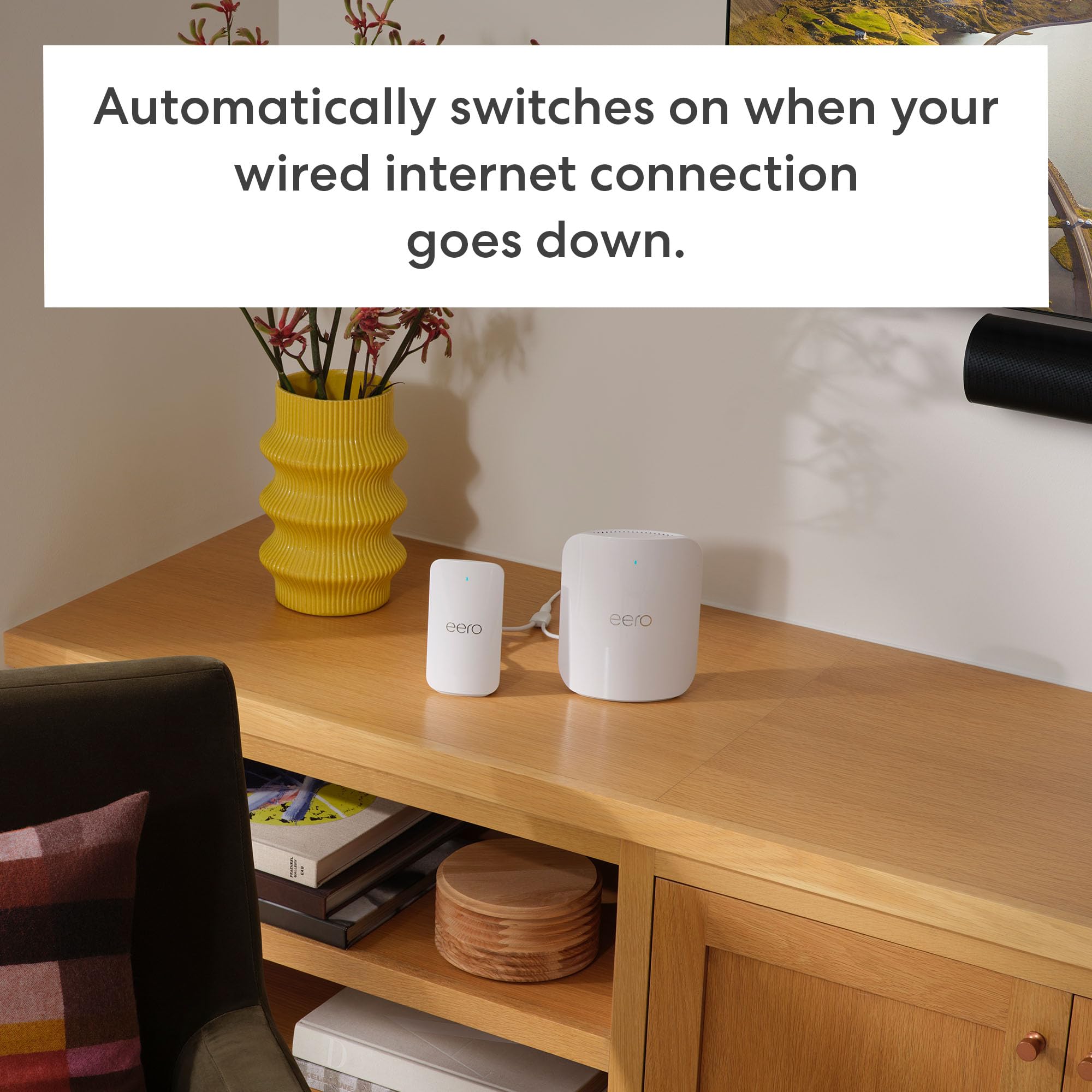 - STAY CONNECTED – eero Signal automatically delivers cellular backup whenever your wired internet connection goes down. Simply connect it to a compatible eero, add an annual eero Plus subscription, and you’re set.