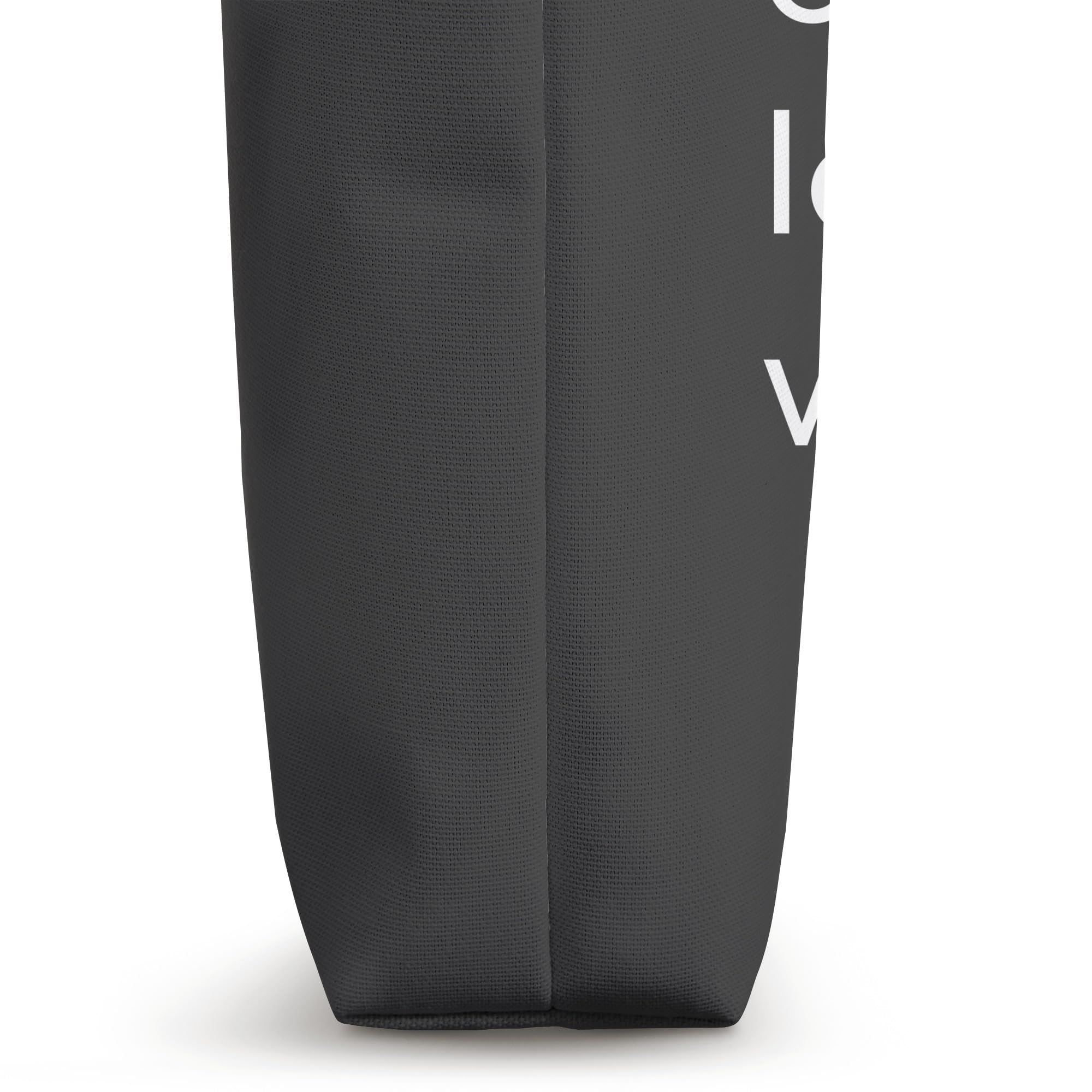 - 16” x 16” bag with two 14” long and 1” wide black cotton webbing strap handles.